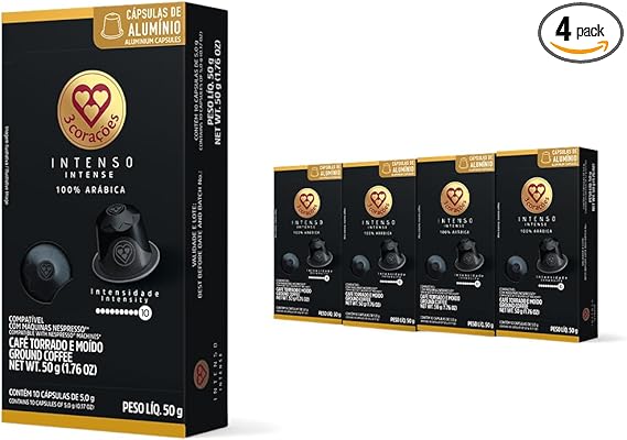 3 Corações Cápsulas de Café Intenso, Compatíveis com Nespresso — preço atual de R$72,82 com entrega grátis e opção de assinatura a partir de R$69,18 por unidade