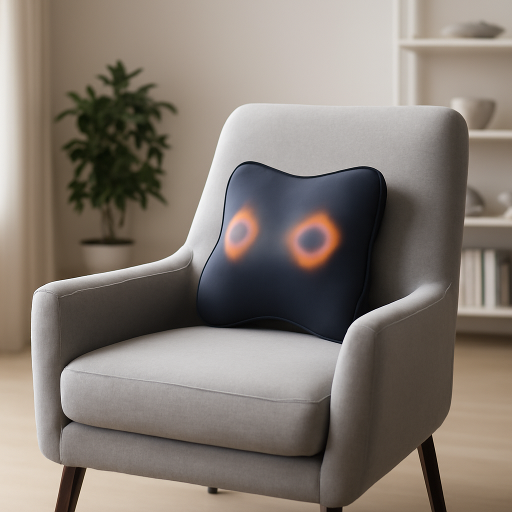 Mas o que torna este produto indispensável? Sua portabilidade e design compacto permitem que você o utilize em diferentes ambientes — seja em casa, no escritório ou até mesmo no carro. É muito mais que uma almofada; é um mini spa portátil que cabe no seu dia a dia.