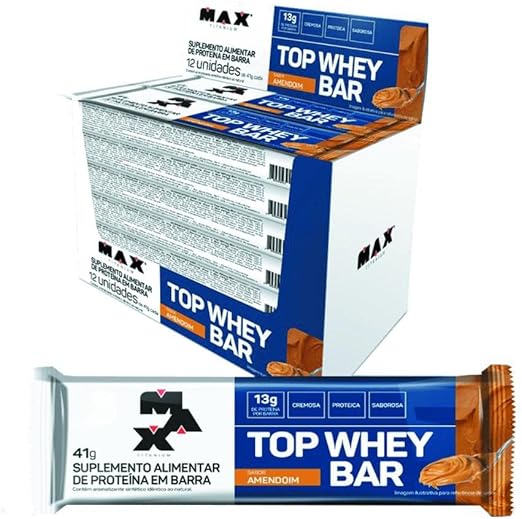 Top Whey Bar Max Titanium: 12 barras 41g por R$74,90 para lancheira