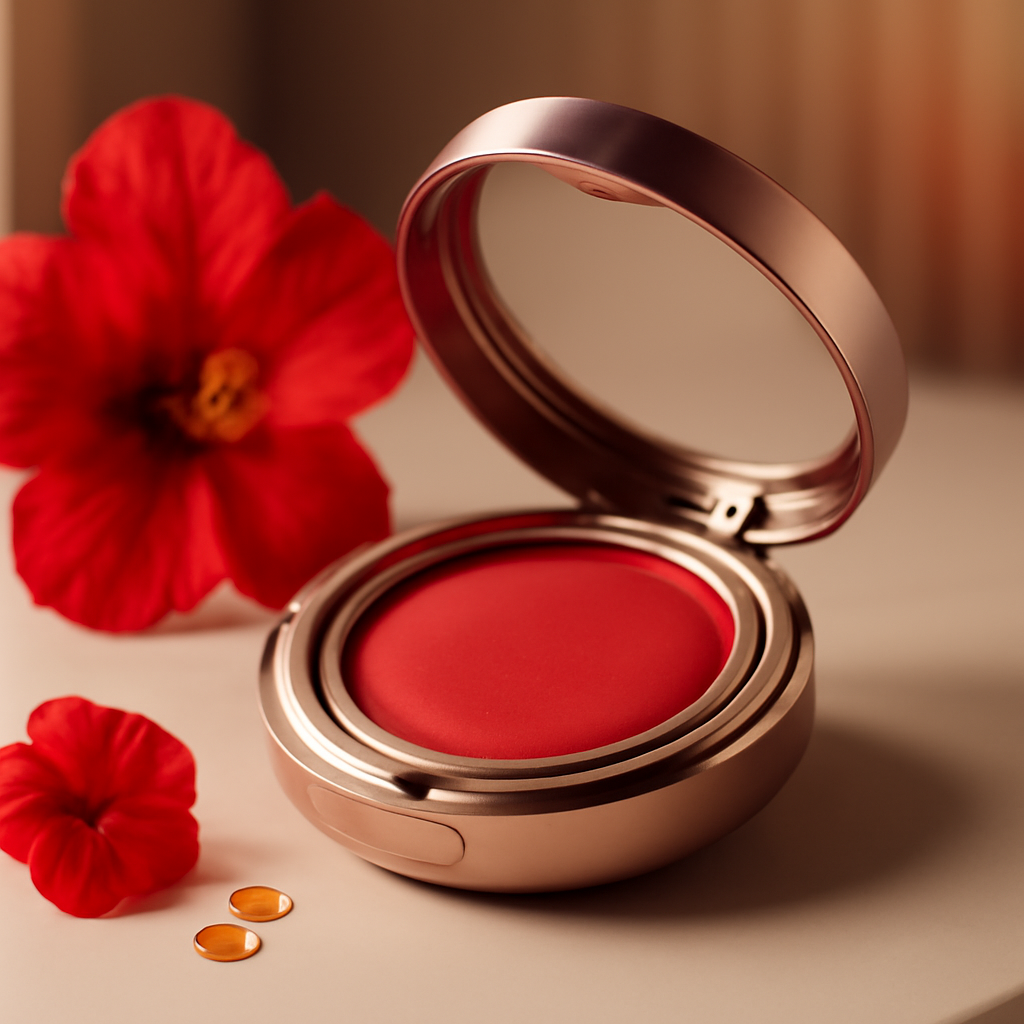 Energia vermelha — um complexo nutritivo que revitaliza a elasticidade da pele, reduzindo sinais de fadiga. A textura ultrafina é levemente acetinada, promovendo acabamento glow natural, distinto do acabamento matte ou excessivamente luminoso.