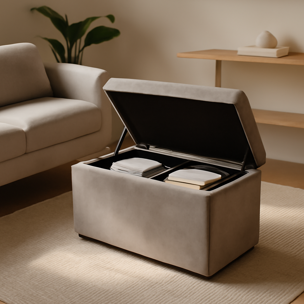 Um dos principais diferenciais desse modelo é a união entre funcionalidade e acabamento premium. A tampa com abertura facilita o acesso ao conteúdo interno, e o tecido suede traz uma textura macia que valoriza qualquer decoração. Além disso, sua versatilidade permite que ele seja posicionado em diversos cômodos, ampliando as possibilidades de uso.
