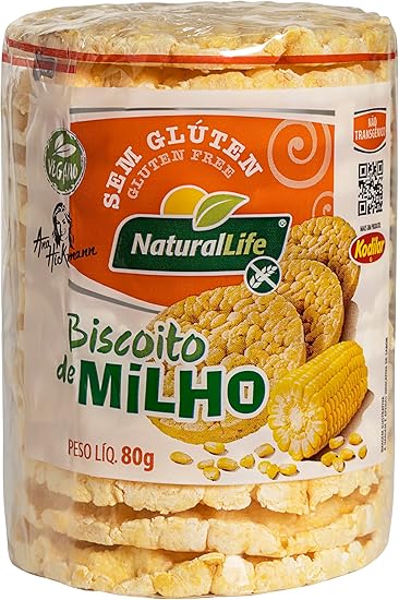 Biscoito de Milho Natural Life: vegano, sem glúten, 80 g por R$11,99