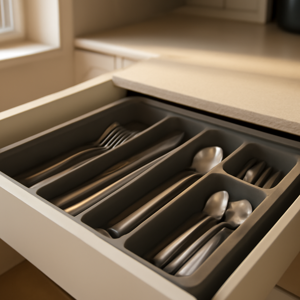 - Organização prática: mantém a tábua de corte em pé e ao alcance, sem interferir no espaço da bancada.