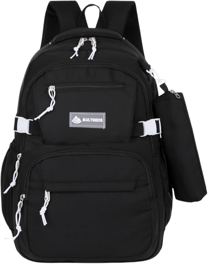 Construída em nylon impermeável e reforçado, a mochila promete proteção contra chuva e respingos sem abrir mão da organização. São seis bolsos com zíper, dois bolsos laterais e uma divisória interna acolchoada para notebook, além de vir acompanhada de um estojo na mesma cor da mochila escolhida. As medidas indicadas (16 x 45 x 32 cm) sugerem capacidade suficiente para cadernos, itens escolares, livros e até equipamentos compactos, mantendo o peso de apenas 500 g — um ponto a favor de quem precisa carregar diariamente.