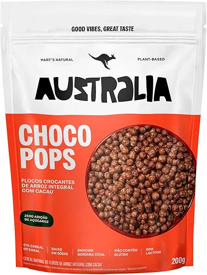 Hart’s Natural ChocoPops Australia Chocolate | Cereal Matinal sem açúcar, vegano e 200 g por R$26,90 (desconto de 7% frente a R$29,00)