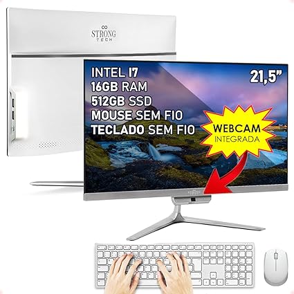 Computador All In One Intel Core i7 21,5″ Full HD 16GB SSD 512GB 4 Núcleos Strong Tech — preço atual de R$2.606,00 com cupom de R$100