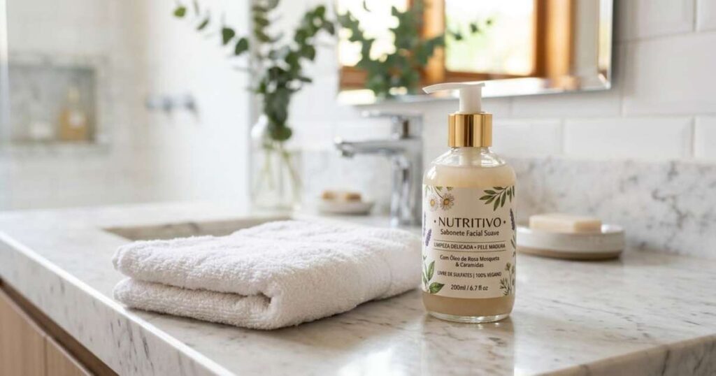 Entenda por que substituir o sabonete comum por opções suaves após os 40 anos para proteger o pH da pele e evitar a sensibilidade excessiva no rosto maduro.