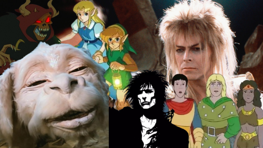 Para acompanhar esse movimento, vale olhar para o conjunto de obras que se tornou referência na virada da década. Em cinema, estavam filmes que combinavam estética marcante, efeitos práticos de tirar o fôlego e trilhas que quase parecem sinestesias entre sintes e oscuridade: Labirinto (1986), A História Sem Fim (1984), O Caldeirão Mágico (1985), A Lenda (1985) e O Cristal Encantado (1982) aparecem como pilares de uma era em que a fantasia amadurecia sem abrir mão do encanto infantil. A presença de fantoches, bonecos e criaturas feitas na prática, aliada a trilhas de tom sombrio, conferiu aos longas uma textura que ainda hoje desperta saudades.