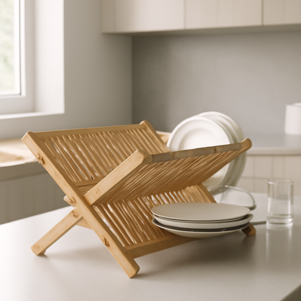 O Escorredor de Pratos Articulado em Bambu Dobravel é uma solução elegante e funcional que une design e praticidade. Feito em bambu natural, um material que não retém umidade e possui propriedades antibacterianas, ele se destaca por sua durabilidade e higiene na cozinha.