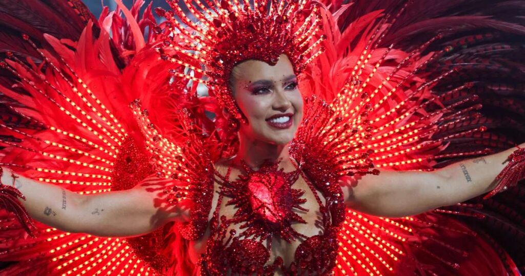 Virginia Fonseca não teve sorte em 2026, ano em que estreou como rainha de bateria; a Grande Rio terminou em oitavo lugar e não disputará o desfile das campeãs, que reúne apenas as seis melhores colocadas.