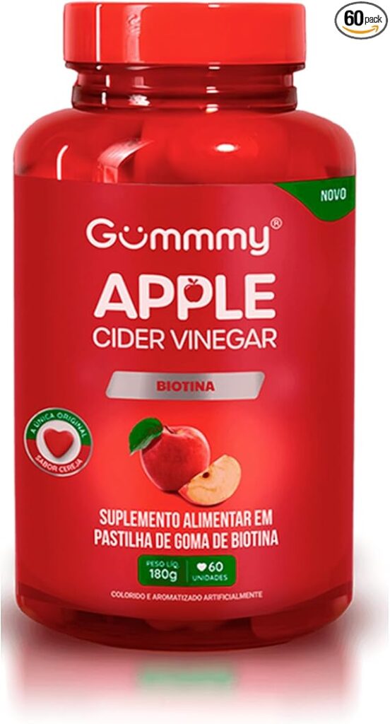 - Por que vale a pena: prática gominha com vinagre de maçã e biotina; sabor Cereja; embalagem com 60 unidades (180 g); frete grátis na Amazon e desconto adicional ao comprar 2+ unidades.