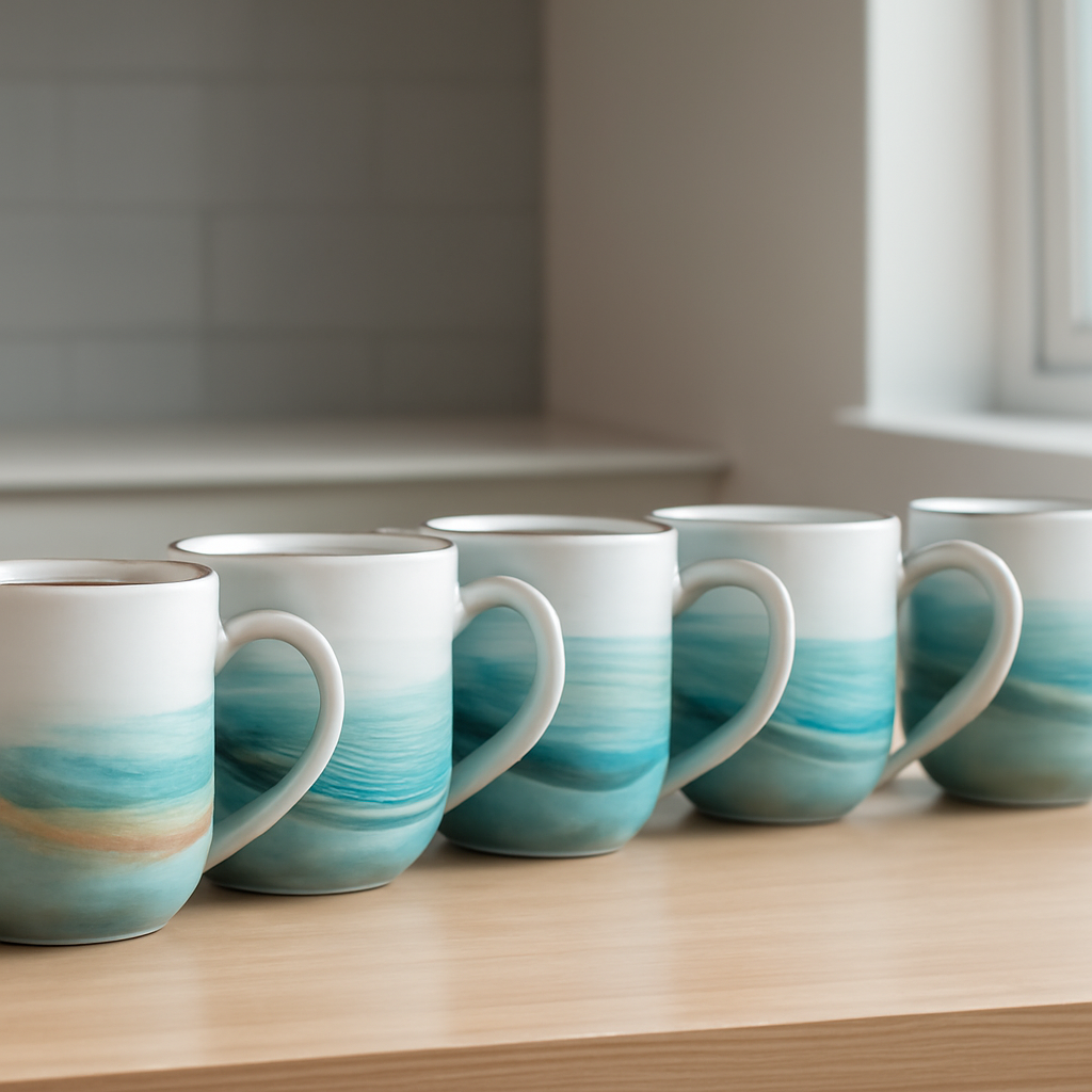 Este conjunto é muito mais que apenas um acessório para servir café ou chá; ele traz a essência das praias brasileiras para sua casa com um acabamento exclusivo. Produzidas em porcelana de alta qualidade, as canecas Ryo Maresia têm um esmalte especialmente aplicado à mão, garantindo que cada peça seja única, com uma beleza natural inspirada no mar e na areia.