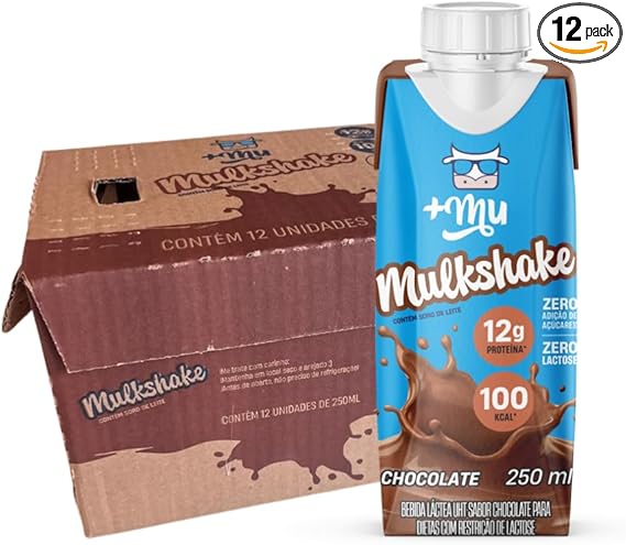 Mu Mulkshake: Bebida Proteica Láctea UHT Sabor Chocolate — Pack 12 por R$85,89 com entrega grátis e 12 g de proteína por porção