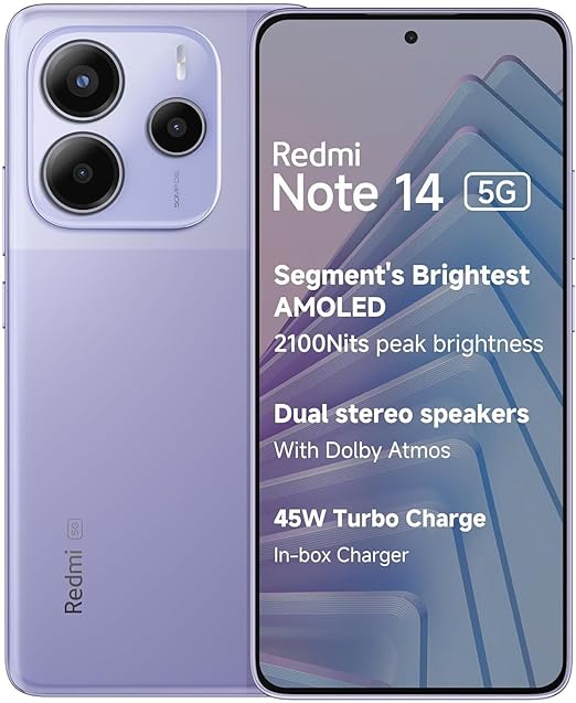 Redmi Note 14 5G NFC (Violeta Lavanda) com 8GB RAM/256GB ROM por R$1.499,90: tela AMOLED 120 Hz, câmera de 108 MP e boa relação custo-benefício para a volta às aulas