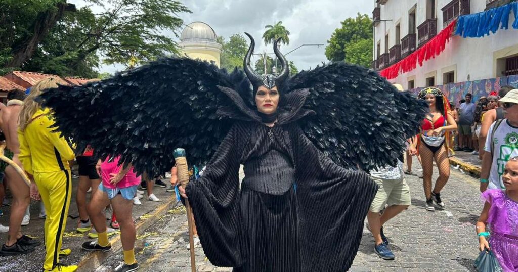 Entre as curiosidades, destaca-se a presença de figuras conhecidas no universo dos cosplayers pernambucanos, que aparecem como Arlequina Oficial e Coringa PE, com figurinos que chamam atenção tanto das crianças quanto dos adultos que passam pela concentração. E não faltam surpresas: a consagrada Angelina Jolie em versão Malévola fez sua estreia no bloco, trazendo a characteristic imponência da personagem. Quem já é folião de carteirinha, como a dedicada Vovó Maravilha, aparece há 13 anos para lembrar a importância de manter viva a tradição de brincar com as fantasias, exatamente para manter as netas e o bisneto encantados.