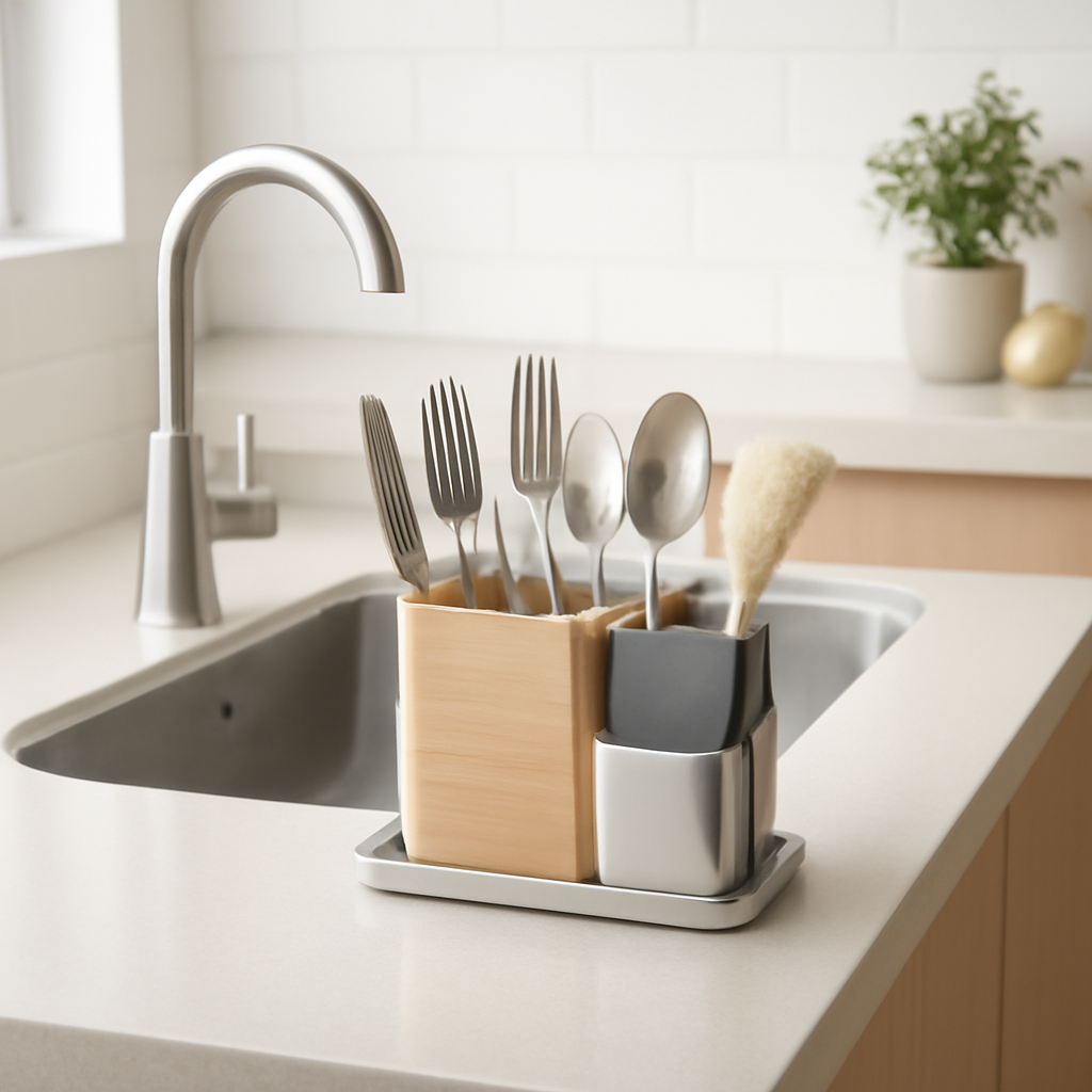 - Ajuda a manter os talheres e utensílios organizados e secos, facilitando o uso diário.