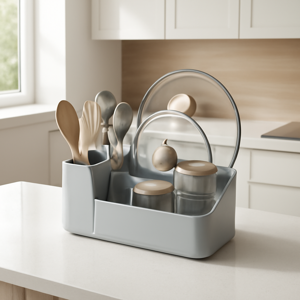 Este organizador multiuso é feito para quem busca uma solução simples e funcional para manter utensílios sempre à mão. Compacto, ele se encaixa bem em armários, prateleiras ou bancadas, ajudando a reduzir a bagunça sem ocupar muito espaço. Além disso, o design clean e discreto combina com diferentes estilos de decoração, do mais clássico ao contemporâneo.
