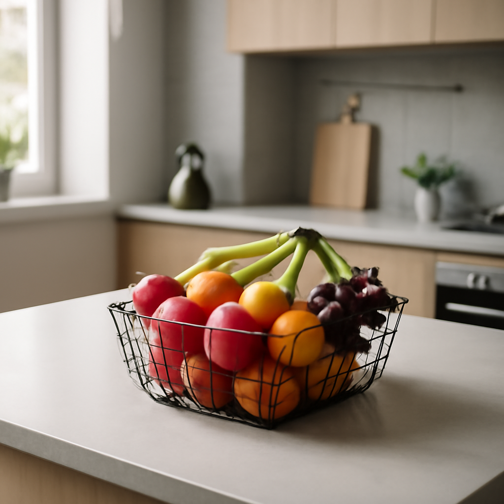 Com esse cesto de frutas, sua cozinha ganha muito mais charme e praticidade. Ele ajuda a manter os alimentos sempre organizados, evitando bagunça sobre a bancada, e ainda funciona como uma peça decorativa discreta e elegante. Assim, você deixa o ambiente bonito, funcional e cheio de estilo, sem precisar de grandes mudanças.