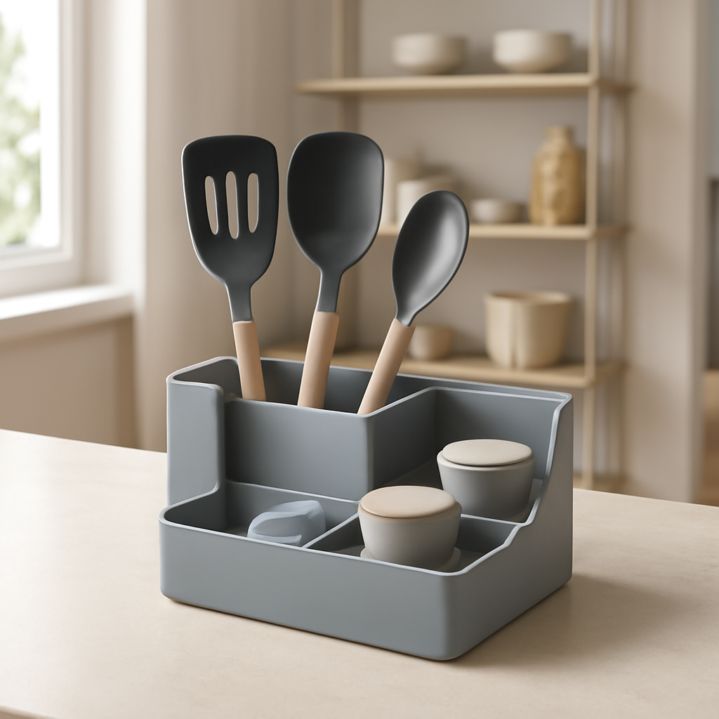 Na cozinha, por exemplo, você pode usar este organizador para separar utensílios e mantê-los sempre acessíveis durante o preparo das refeições. Assim, evita aquele momento corrido buscando objetos e ainda mantém a bancada mais limpa e funcional.