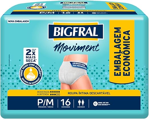 Roupa Íntima Bigfral Moviment P/M 16 Unidades: oferta na Amazon por R$42,74 (desconto de 33% em relação ao preço anterior)