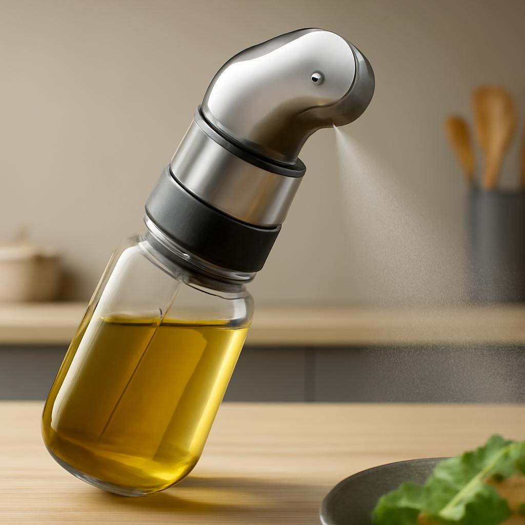 Ao substituir garrafas tradicionais, o spray borrifador 2 em 1 assegura uma experiência mais limpa, prática e elegante na cozinha.