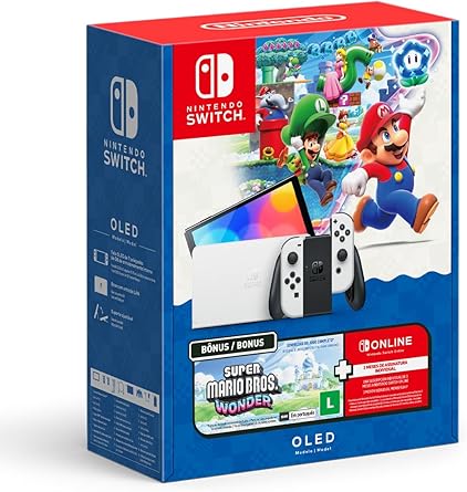 [Parágrafo 2] O ponto mais forte do pacote é, sem dúvida, a tela OLED de 7 polegadas, que promete cores mais vivas, pretos mais profundos e um brilho adequado para uso sob diferentes condições de iluminação. O console mantém o formato híbrido, permitindo jogar na tela portátil ou conectá-lo à TV, com a experiência de jogo fluida que os fãs já conhecem. A inclusão do Super Mario Bros. Wonder adiciona um título de peso ao conjunto, oferecendo a promessa de diversão local com amigos, especialmente ao explorar as mecânicas novas apresentadas no game, aliado à assinatura do Switch Online para acesso a modos online e uma coletânea de jogos clássicos.