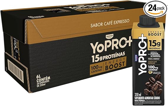 YoPRO Energy Boost Café Expresso — Pack 24×250 ml por R$179,76 na Amazon: energia proteica pronta para o dia a dia